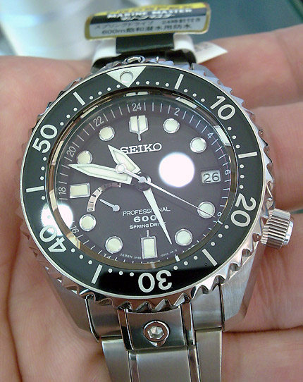 The next watch that I saw was the Spring Drive Marinemaster 600m, SBDB001. This watch has a titanium case and feels pretty light on my hand. This is the first time I saw this watch in the flesh.