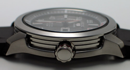 By examining the watch, it looks like the case is made of two parts. The first part is cylindrical shaped and contains the dial and movement. Somehow, the lines on the side remind me of car engine piston.