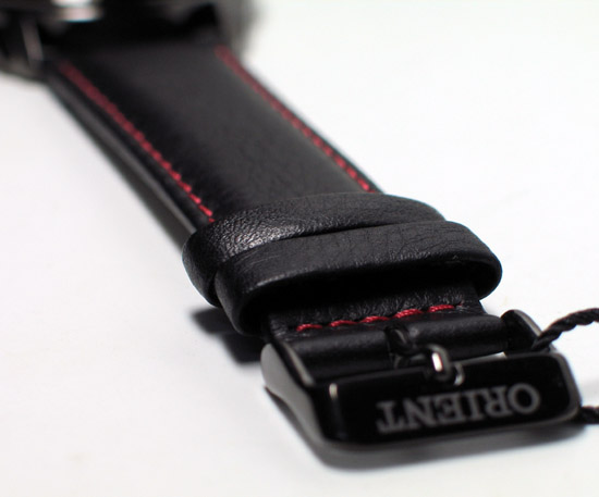 The black leather strap with red stitching reminds user of the comfortable leather seats in the the Subaru WRX and other models.