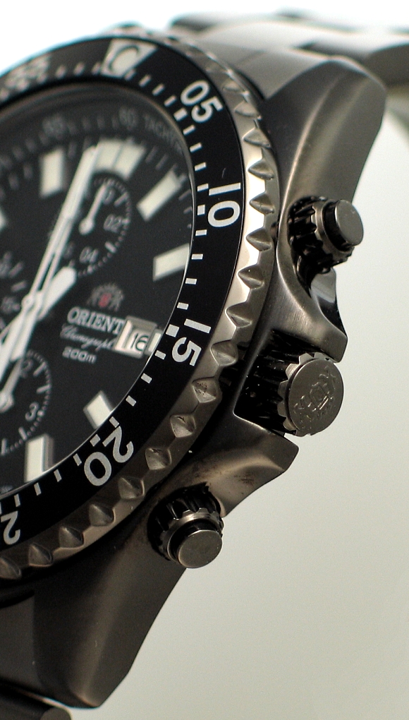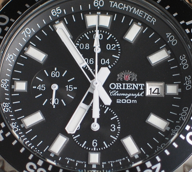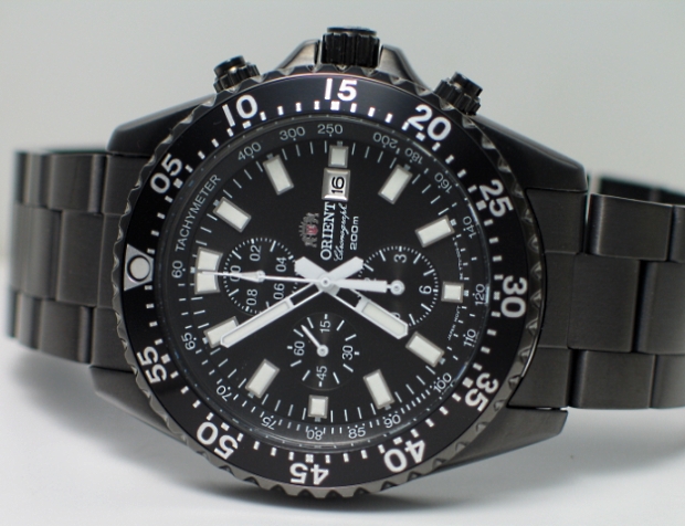 Seiko made a solar powered chronograph diver that has gained popularity among Seiko fans. Orient also has a battery powered 200m chronograph that is worth taking a look. Here’s a quick photo review of the watch.