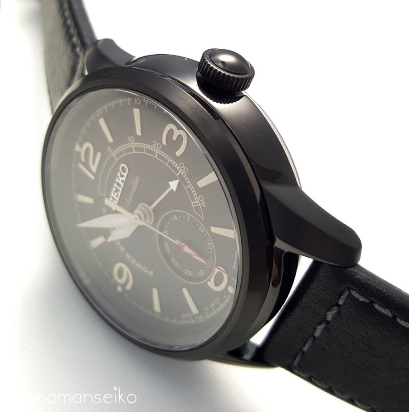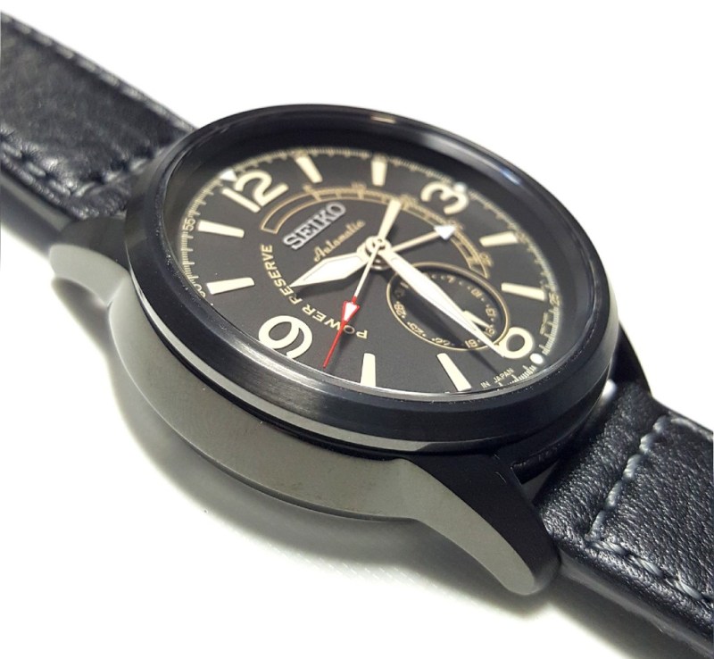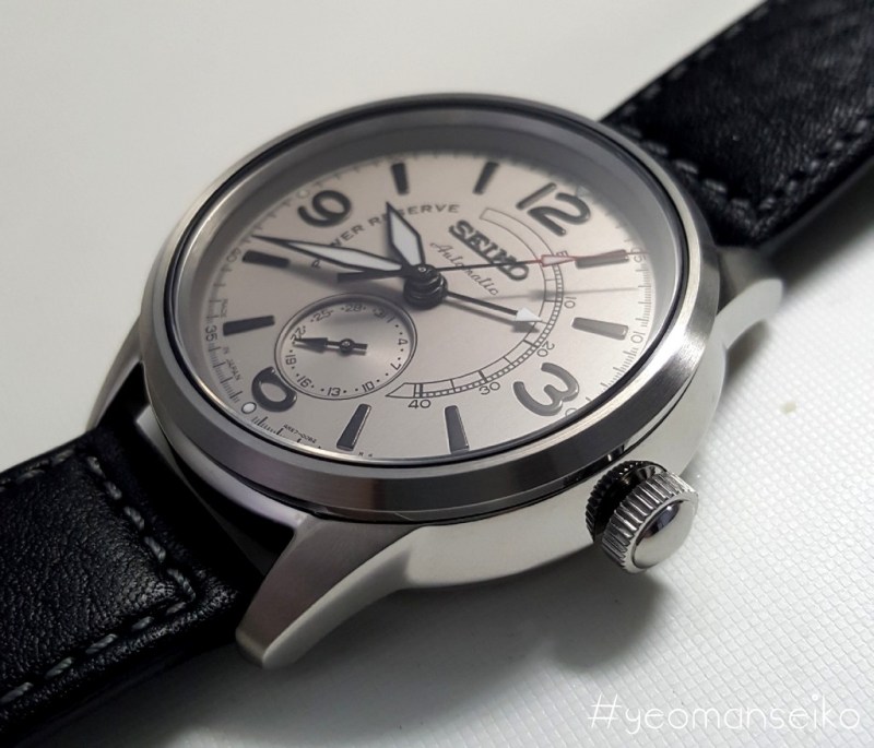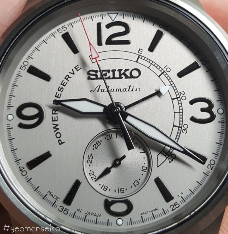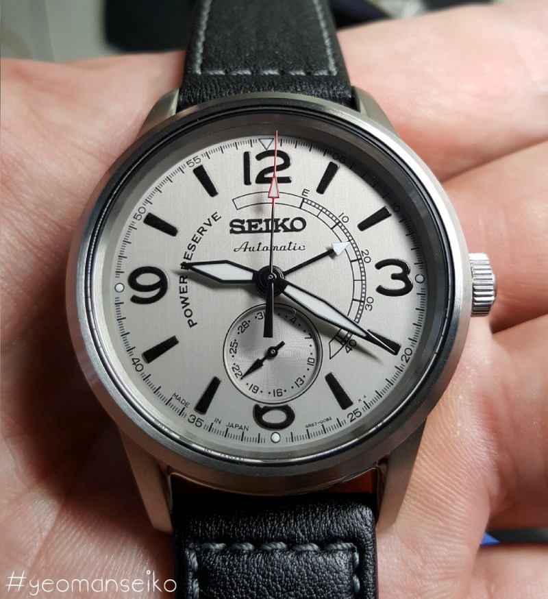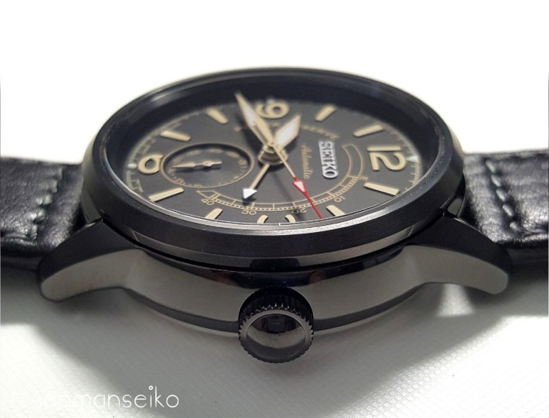 I would say this model has a pilot styled design with the 3,6,9 and 12 numerals reminding me of the Sinn 556 and Oris Big Crown. The 4R57 movement has a power reserve indicator and a date sub-dial at 6 o’clock. This is the first non dress watch model that uses the 4R57 movement. I think it works well on this particular dial design and it shows that the 4R57 movement is quite a versatile movement. It is mostly used in dress watches but I think it can also be used in other watch types such as pilot styled, military inspired and even racing styled watches.