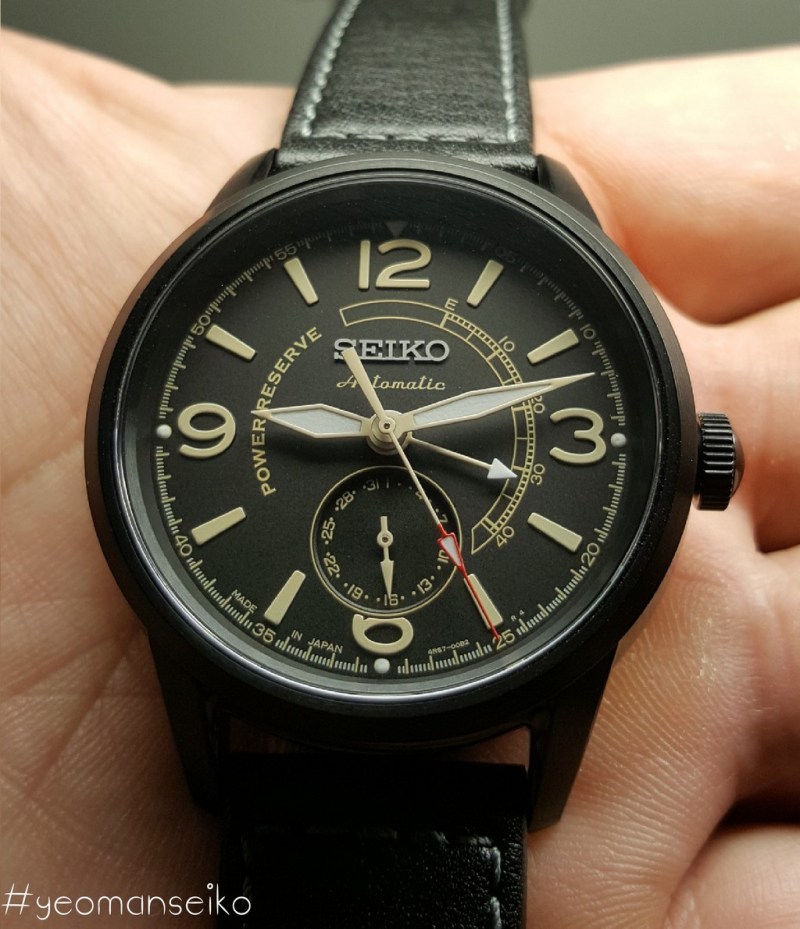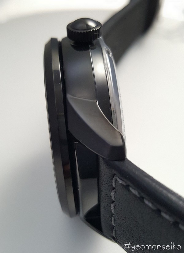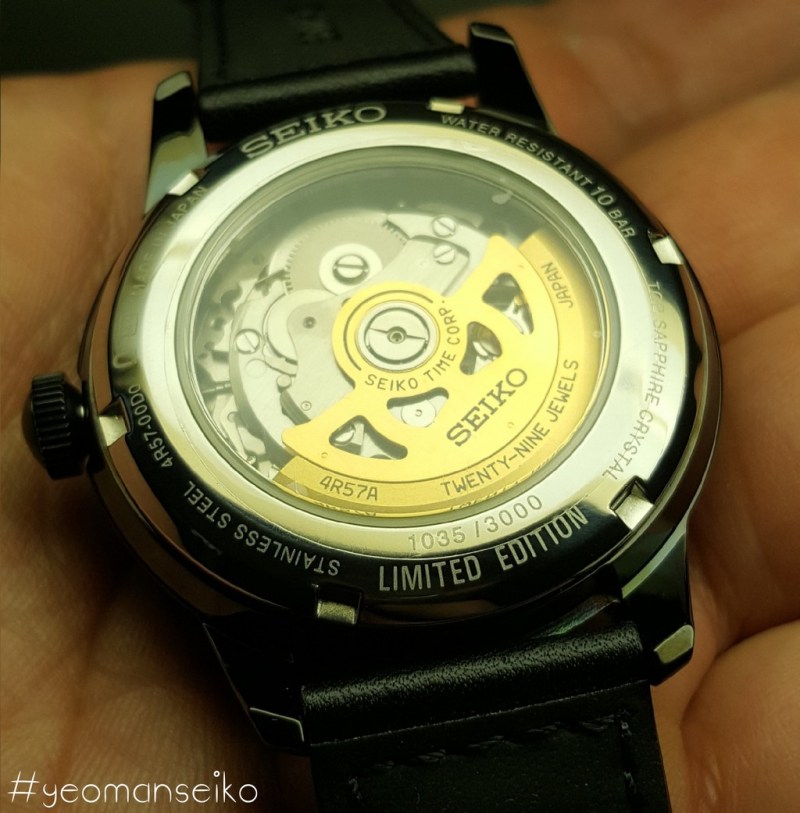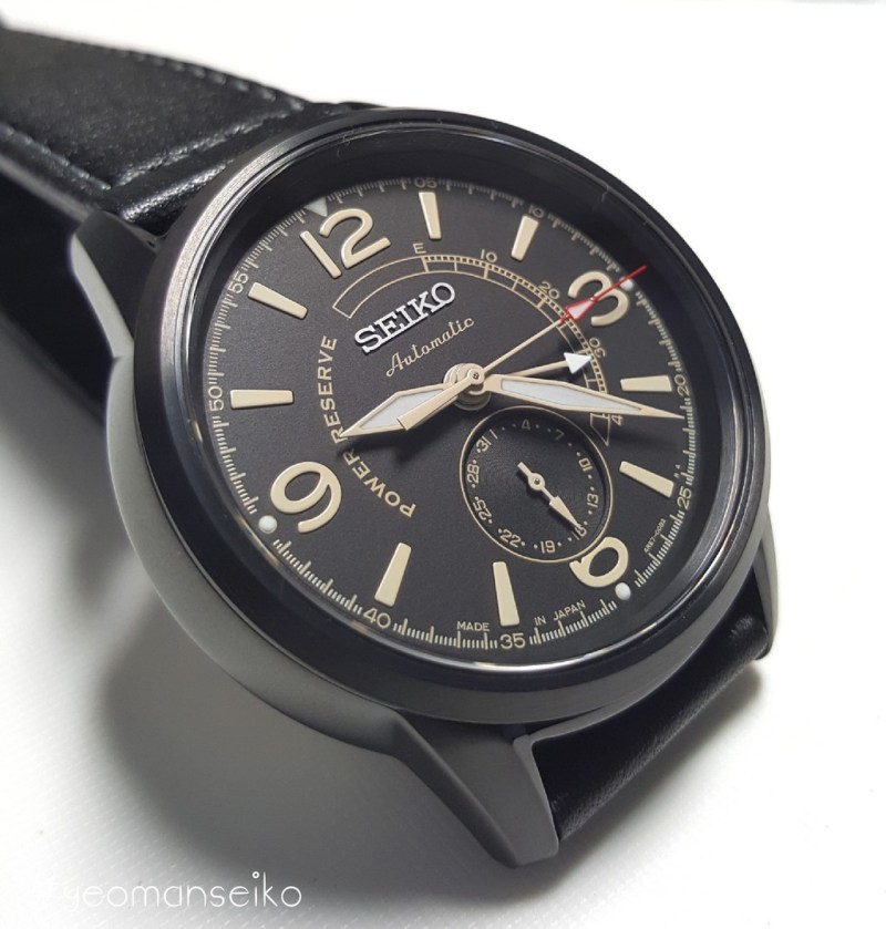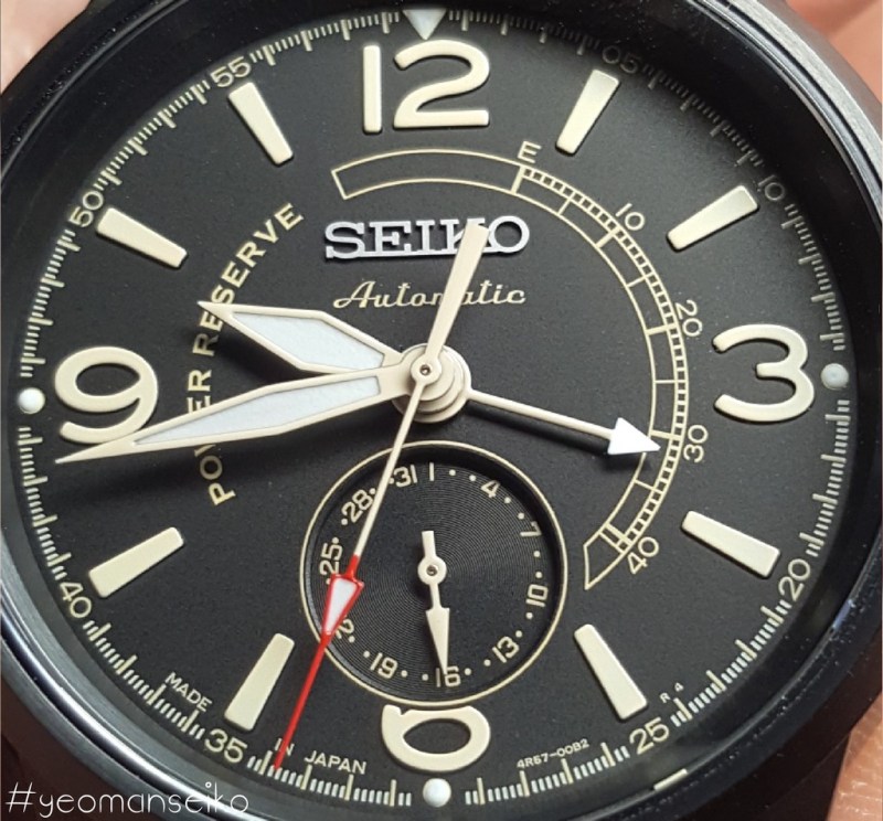 I would say this model has a pilot styled design with the 3,6,9 and 12 numerals reminding me of the Sinn 556 and Oris Big Crown. The 4R57 movement has a power reserve indicator and a date sub-dial at 6 o’clock. This is the first non dress watch model that uses the 4R57 movement. I think it works well on this particular dial design and it shows that the 4R57 movement is quite a versatile movement. It is mostly used in dress watches but I think it can also be used in other watch types such as pilot styled, military inspired and even racing styled watches.