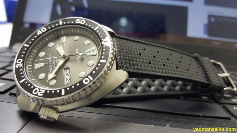 The SRPC23K was released at the right time because I got a Tropic strap from cheapestnatostraps.com recently and it is a perfect match for the watch. The grey dial has a vintage feel that goes very well with the Tropic strap.