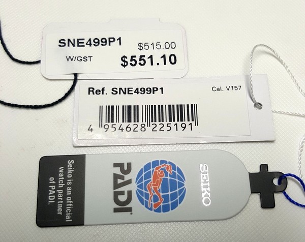 The first variant would be the PADI version, SNE499P1. It has a Pepsi bezel, blue shroud, stainless steel case and comes with a beautiful textured dial. It also has a nice red outline on its minute hand. The steel surfaces you see on the front of the watch (bezel, crown and lugs) have a nice non-reflective satin/brushed finishing. The steel surface on the back of the watch has polished finishing. This variant is a special edition as indicated on its caseback.