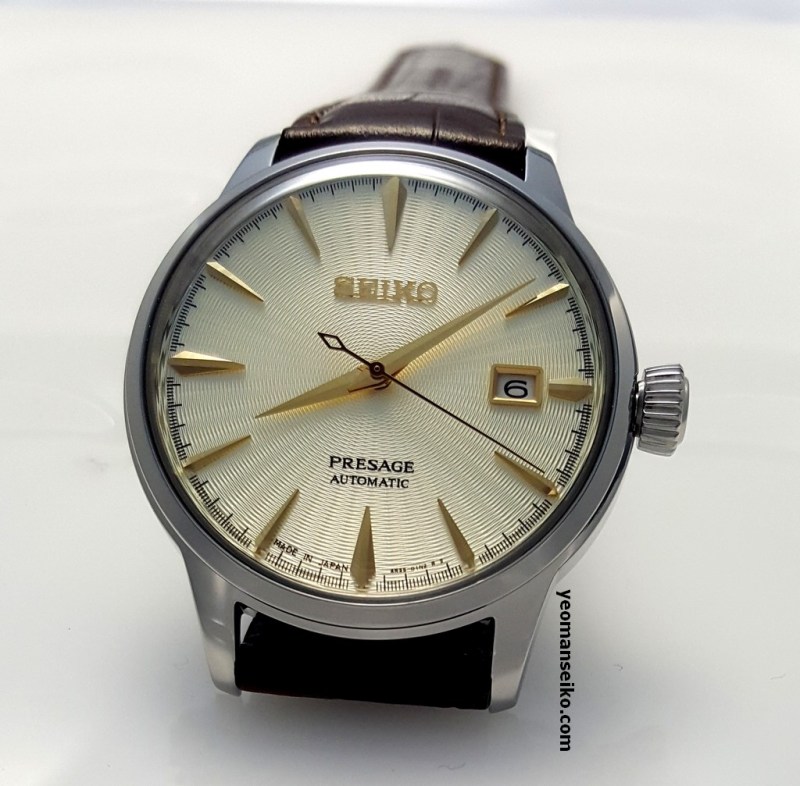 This is a new variant of the 4R35 cocktail time model except it has a different dial texture. I like this model because of its gold hands, markers, as well as its champagne coloured dial. Overall, I think this colour combination gives the watch a very classic look.