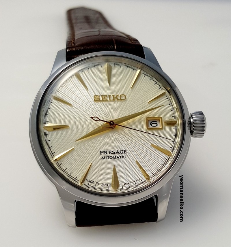 This is a new variant of the 4R35 cocktail time model except it has a different dial texture. I like this model because of its gold hands, markers, as well as its champagne coloured dial. Overall, I think this colour combination gives the watch a very classic look.