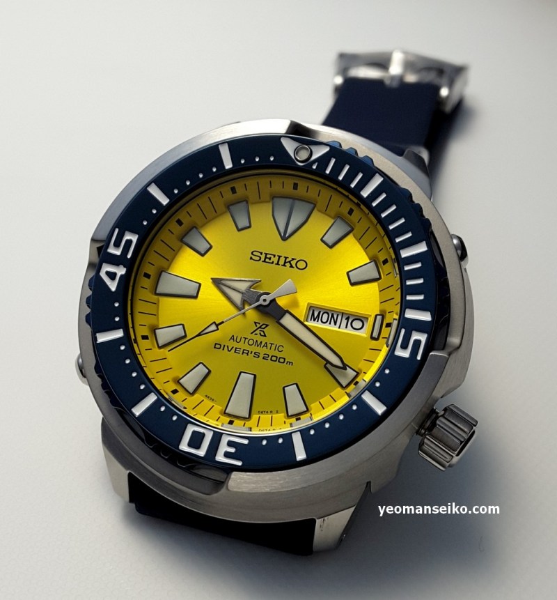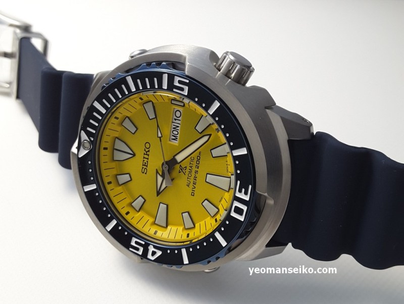 This time round I had the opportunity to handle the yellow Seiko Prospex diver SRPD15K, a limited edition released in Singapore, Malaysia, Brunei, Hong Kong and Macau. This watch is also called the Yellow Butterfly Fish by the watch community.