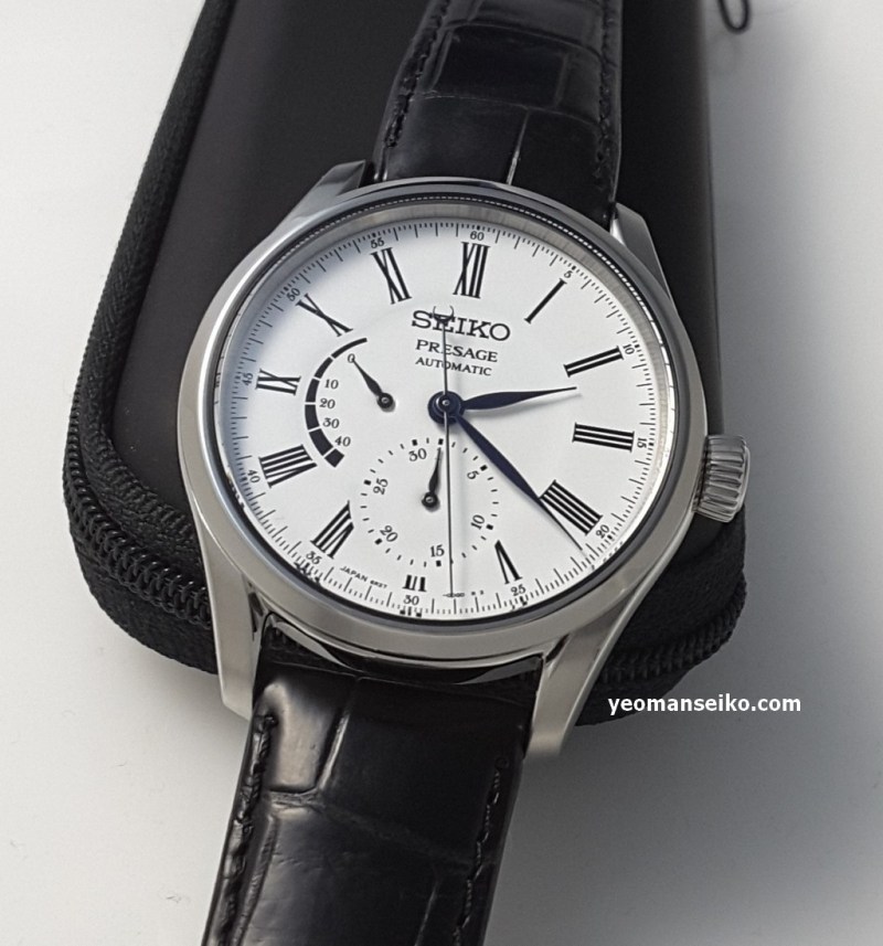 Had the opportunity to handle a Seiko Presage from 2017. Obviously, this is an old model that features a white enamel dial.