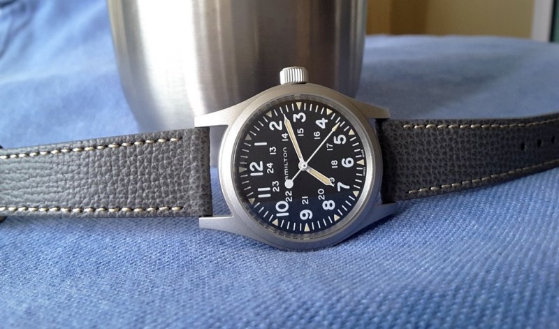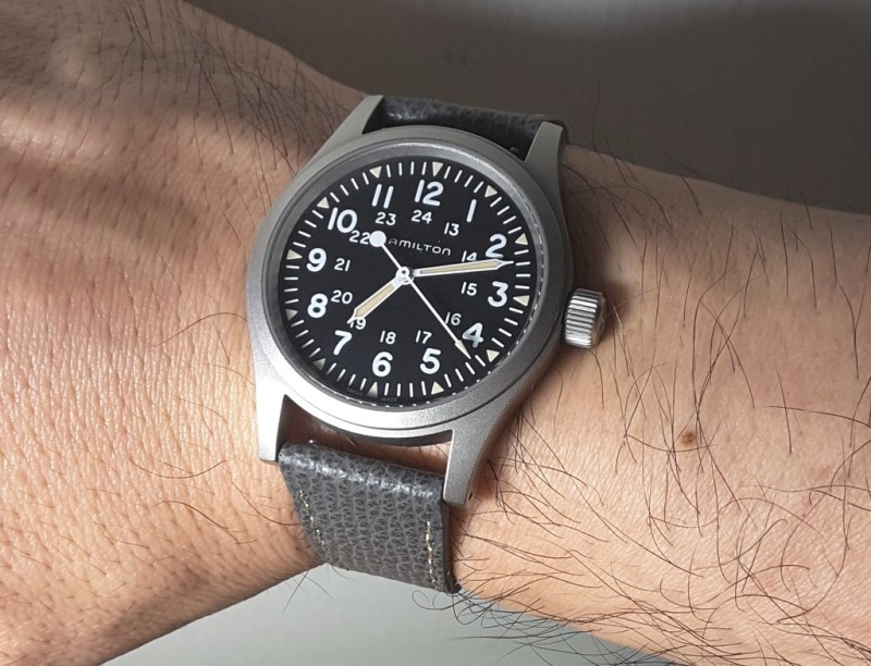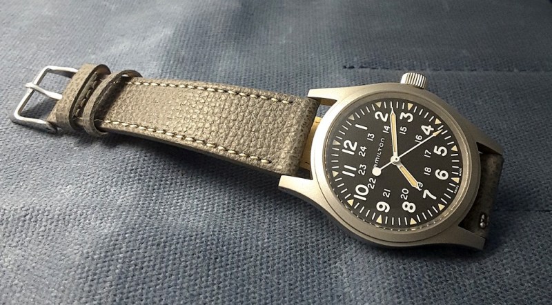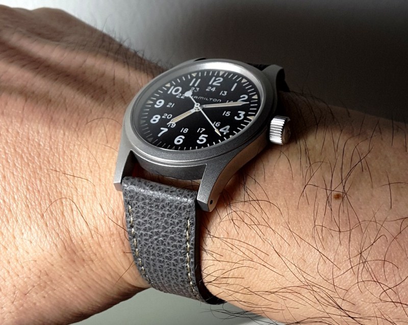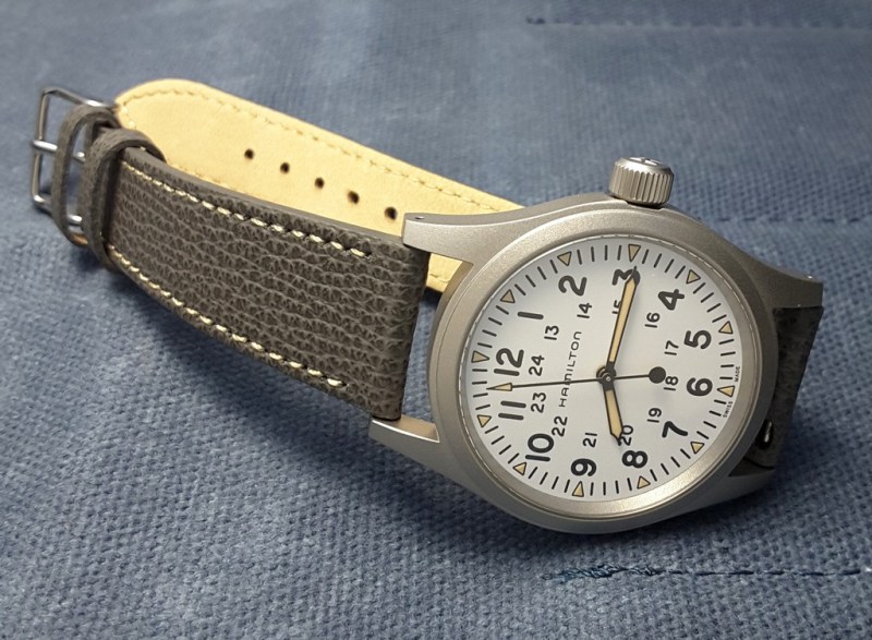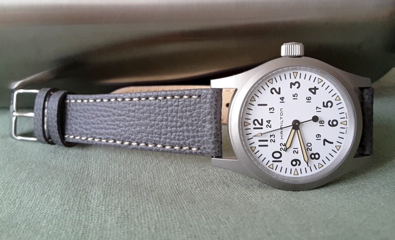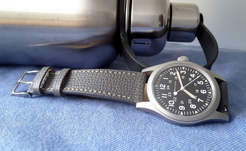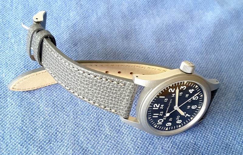 I particularly like the 20mm grey sample as it is the perfect strap for my Hamilton Khaki Field Mechanical watches. The grey colour matches very well with the matte black dial of the watch. Below are some pictures.