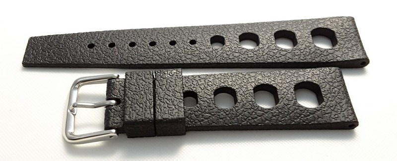 The long end of the strap measures 115mm and the short end is 75mm excluding buckle. The sample I have here is 22mm at the lug end and tapers to 18mm at the buckle end. It has a thickness of 4mm.