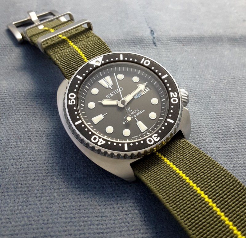 This time round I had the opportunity to try out a one-piece NATO strap made from elastic nylon material that is commonly used by the Marine Nationale inspired straps. This strap is from vario.sg. Let’s take a look.