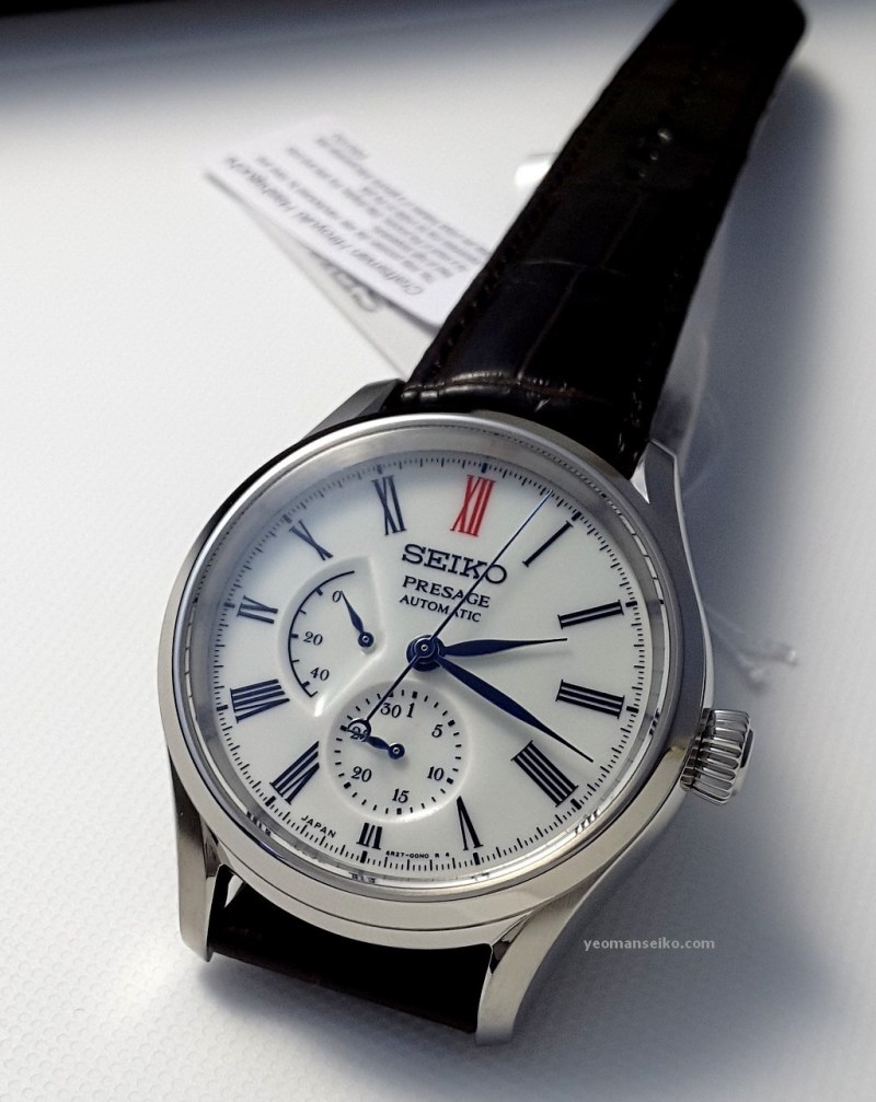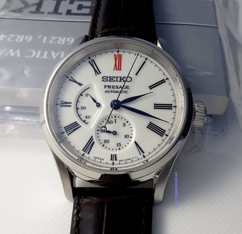Posting some pictures of the Seiko Presage models with Arita Porcelain dial. These two are fairly recent models that were released in 2019. The three-hand model, SPB095J1 is powered by the 6R35 movement which has 70 hours power reserve. The other model, SPB093J1 is powered by the 6R27 movement. It features a power reserve indicator hand and a pointer date sub-dial.