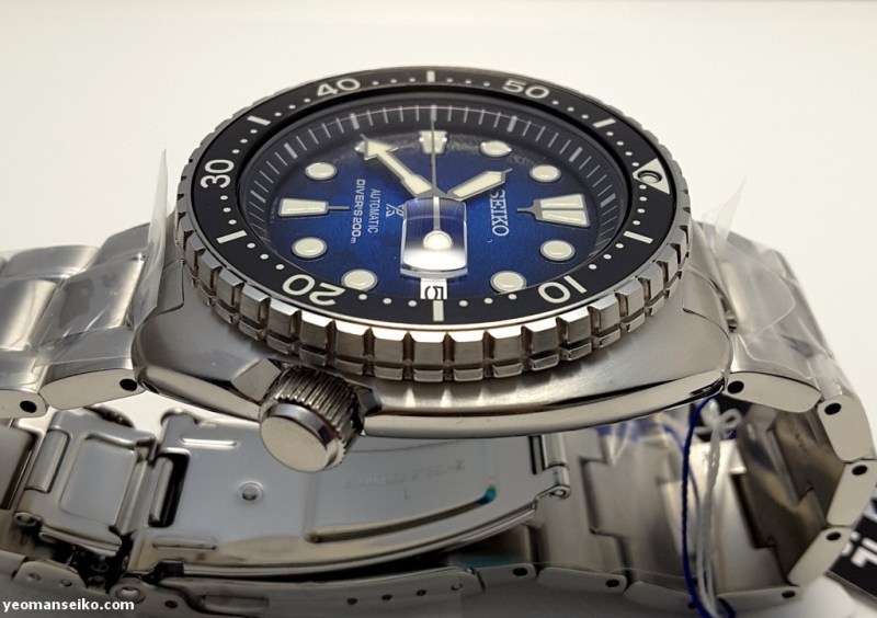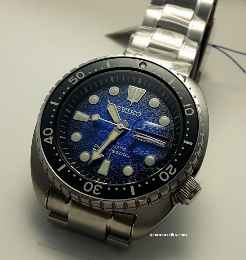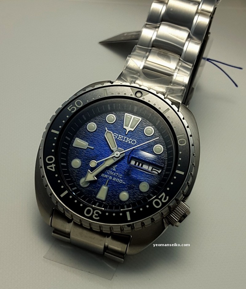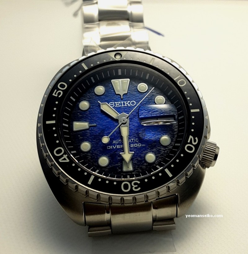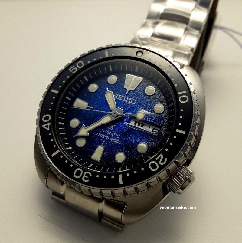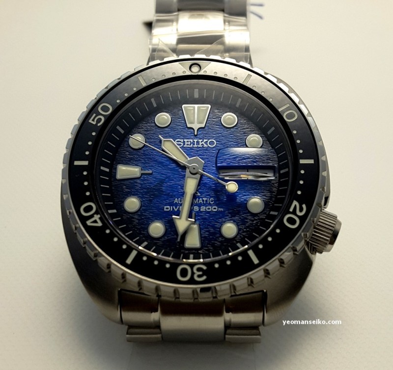 This time round I had the opportunity to handle the Seiko Prospex “Save the Ocean” King Turtle, SRPE39K1. This is a special edition that features a textured blue dial with stingrays printed on it. It is an upgraded version of the Seiko 4R based Turtle. Below are my opinions of the new features.