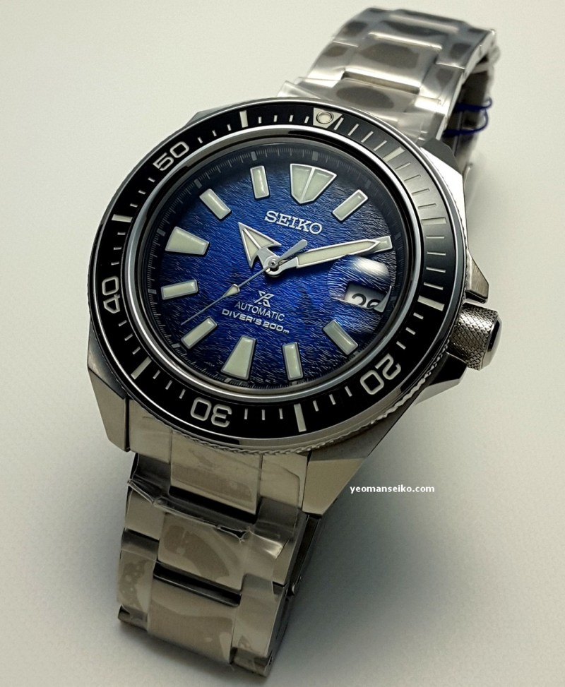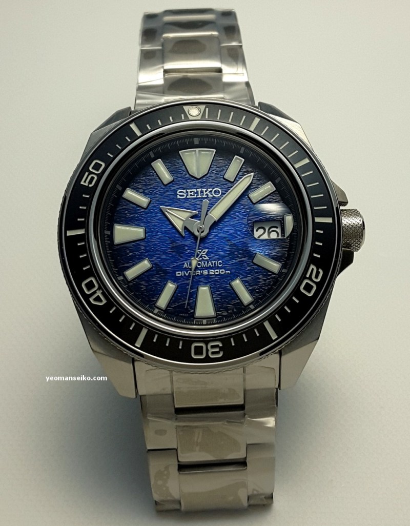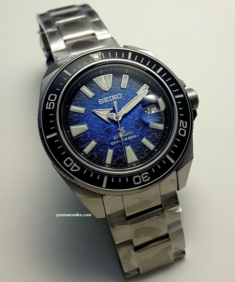 This time round I had the opportunity to handle the special edition Seiko Prospex “Save the Ocean” Samurai, SRPE33K1. This is an upgraded version of the regular 4R based Samurai. Upgraded features include sapphire crystal, anti-reflective coating and cyclops. Below are some pictures.