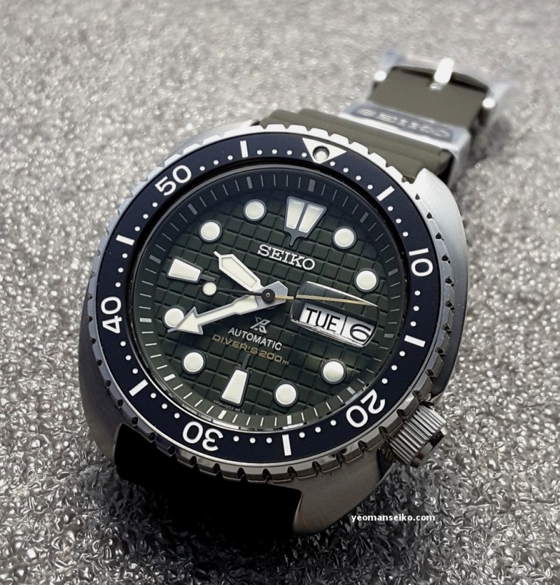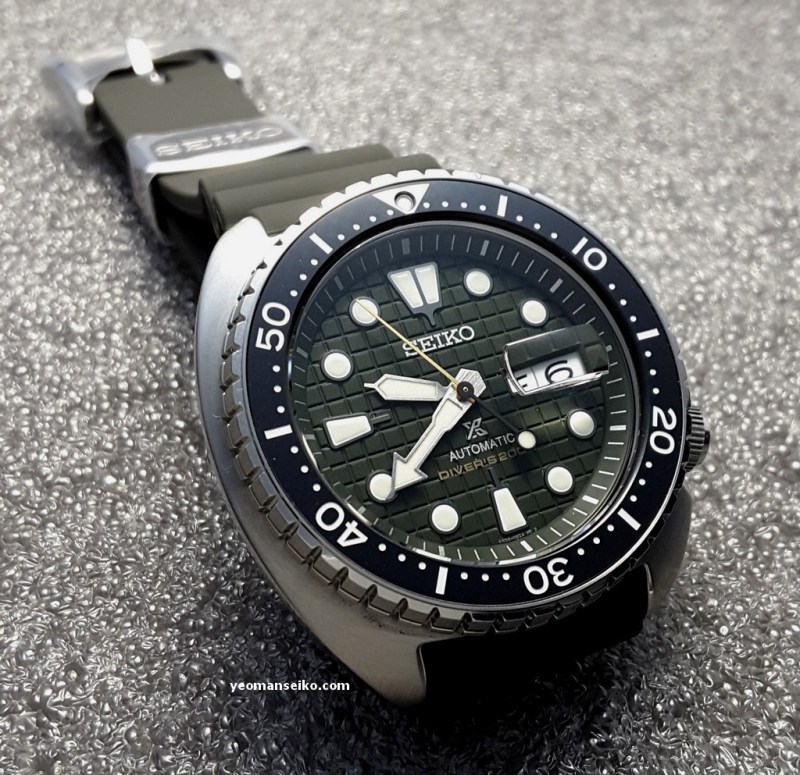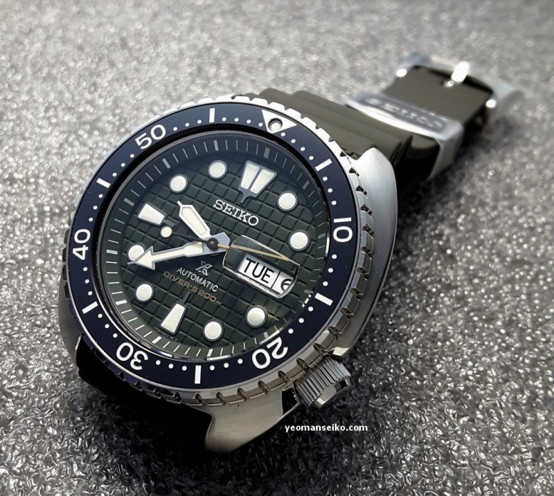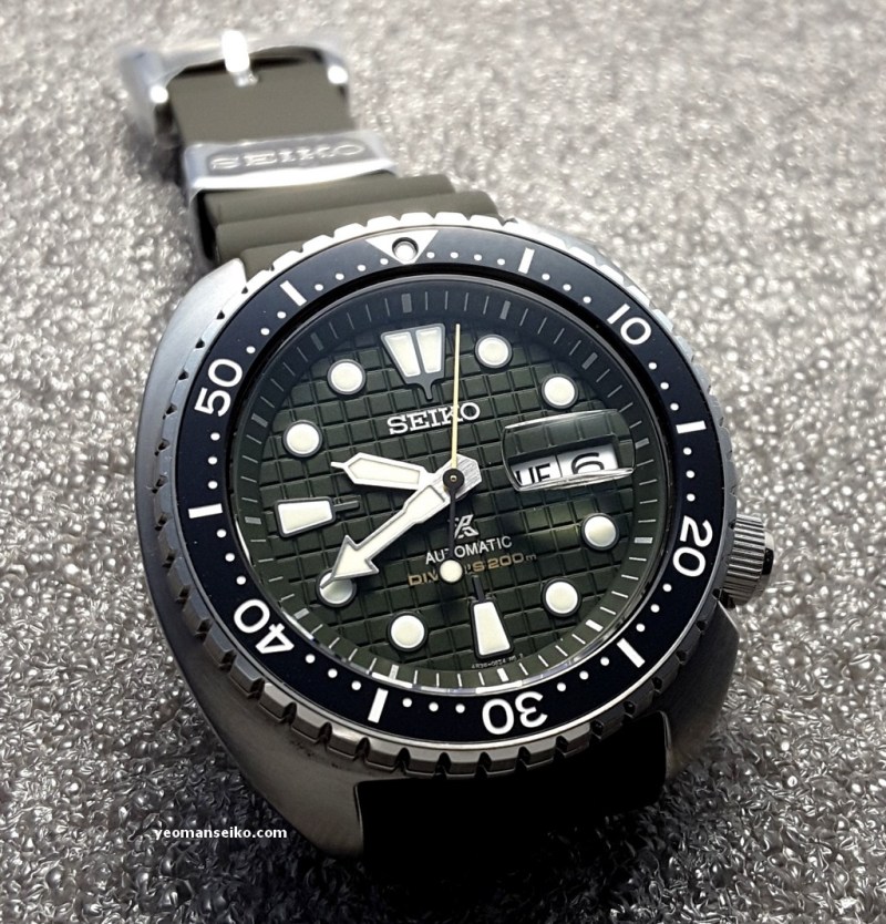 Posting some pictures of the Seiko King Turtle SRPE05K1. This is the King Turtle that I like in recent years because it is not that flashy. The olive green dial gives the Seiko Turtle a military feel. It would be better if there’s no texture on the dial, no cyclops on the crystal and comes with an aluminum bezel insert instead of a ceramic one.