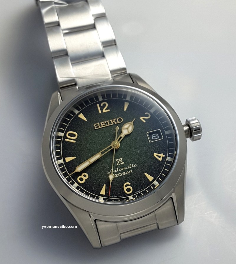 This time round I had the opportunity to handle the new Seiko Alpinist from the Seiko Prospex Land sub-brand. Unlike the previous models, this model has been reduced to 38mm diameter and does not have the inner compass bezel and crown. It is powered by the 6R35 movement that has 70 hours of power reserve.