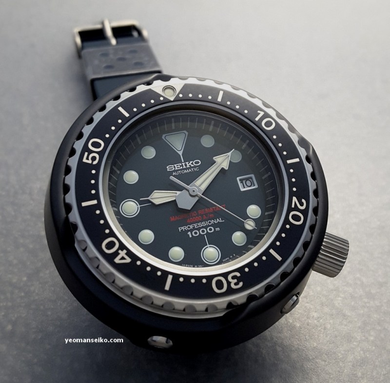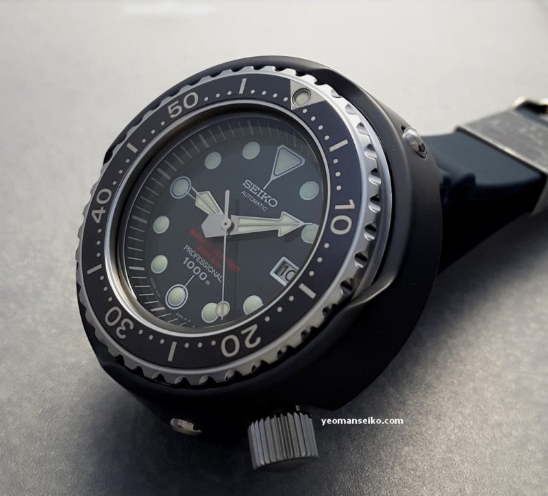 Here’s another commemorative Seiko Prospex model for the 55th Anniversary of Seiko dive watches. This watch is powered by the 8L35 movement and is limited to 1100 pieces. It is modelled after the 1975 Seiko 600m shrouded diver which is the world’s first dive watch with a titanium case. This re-issue model has an increased anti-magnetism rating of 40,000a/m.