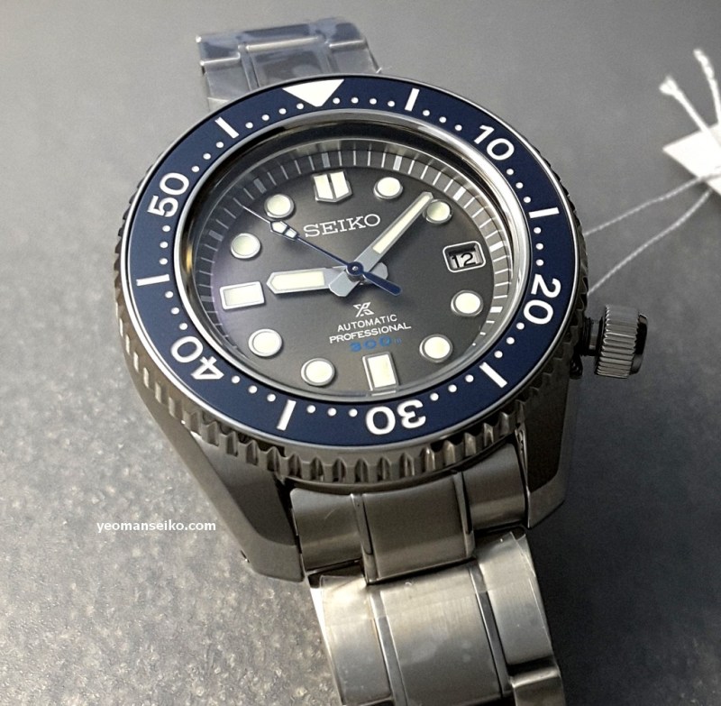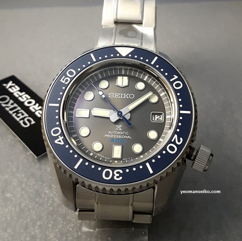 This time round I handled the new limited edition Seiko Prospex diver that is designated for Singapore, Malaysia, Hong Kong, Macau and Brunei markets. It is limited to 300 pieces and comes on a metal bracelet and an additional silicone strap. It has a dolphin grey dial and a blue bezel which is a perfect colour combo in my opinion. The dial is mildly textured and the crown is signed with the Prospex “X” logo.