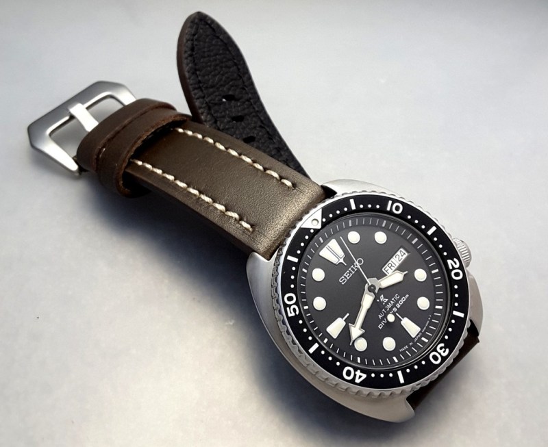 This time round I tried out a thick leather strap with stitching from strapsco.com. I’ve got a 20mm in tan and a 22mm in brown. Let’s take a look.