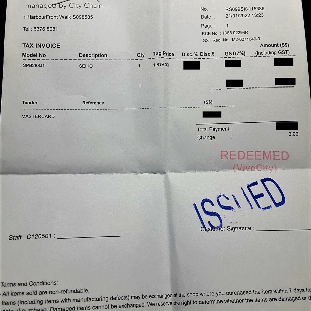 Here’s a new variant of the Seiko Captain Willard that is released exclusively as a Seiko Boutique Edition. There are three Seiko Boutiques in Singapore and this was purchased at the one located at Vivo City (excellent customer service. Thank you).