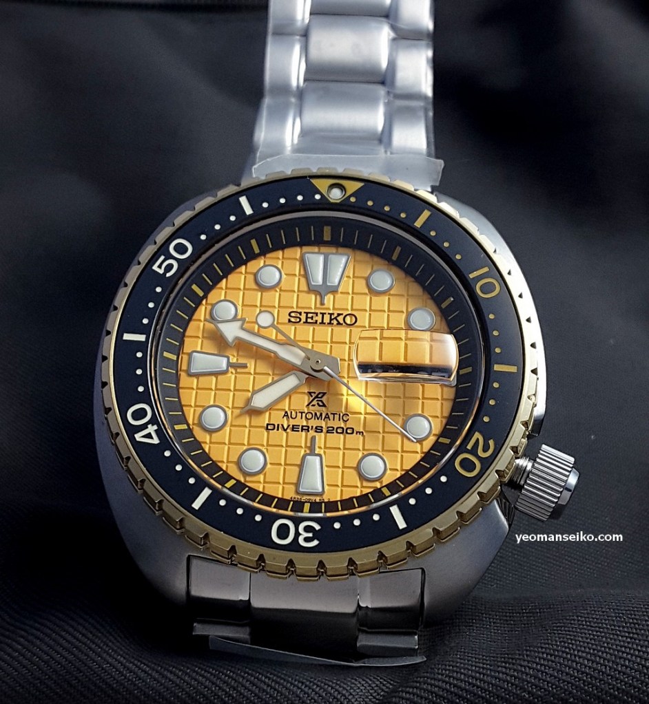 This time round I had the opportunity to handle the Seiko SRPH38K1, a limited edition King Turtle that is created for the Philippine market. The watch is characterized by its bright yellow dial and gold accent on the bezel and bezel insert. The design or rather choice of colours is said to be inspired by the Philippine sunrise and hence it was given the nickname Philippine Sunrise.